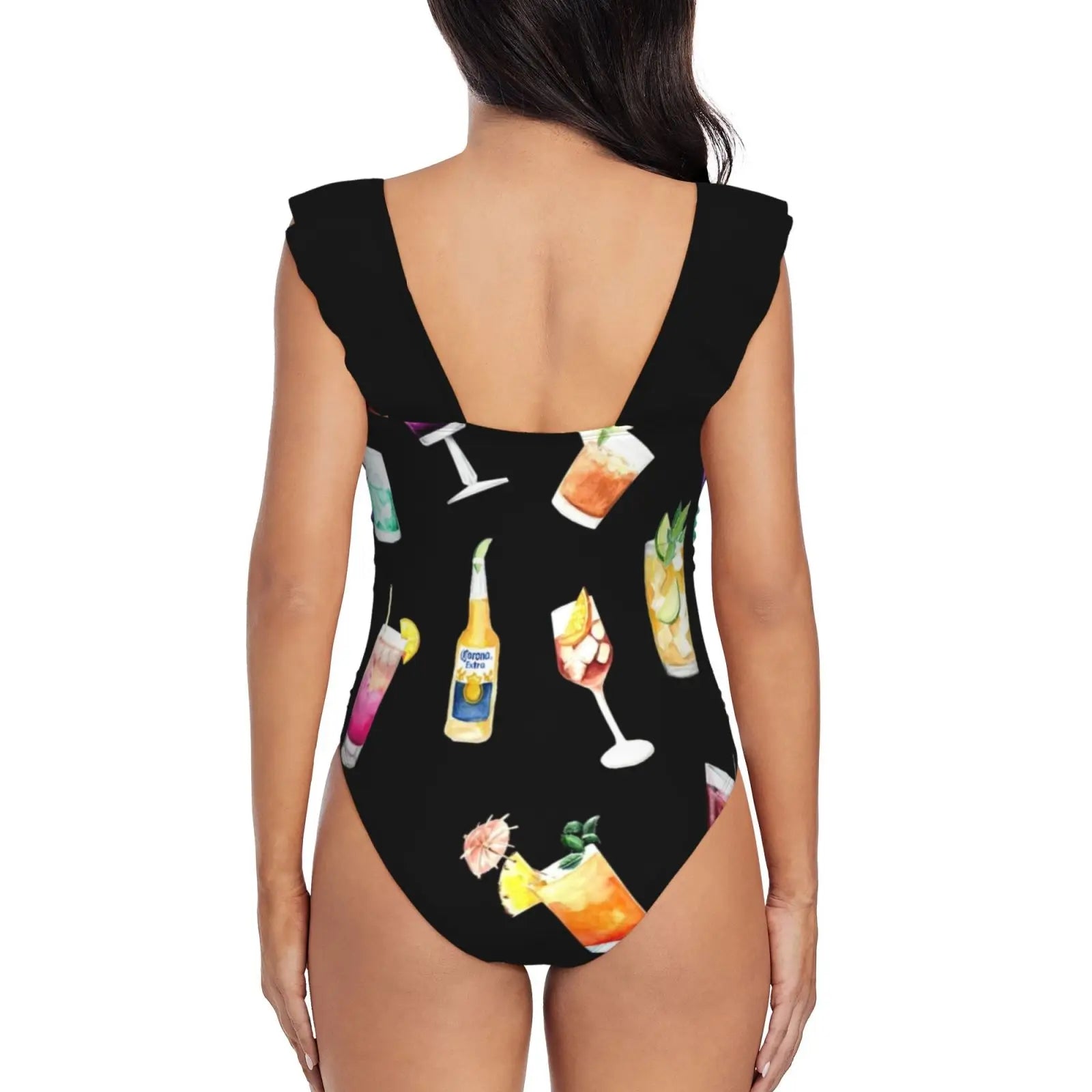 Ruffle Print Cocktail Swimsuit - Sip in Style Turn heads at the beach or pool with the Ruffle Print Cocktail Swimsuit! This chic one-piece features playful ruffles along the neckline and straps, combined with a fun, cocktail-themed print. Perfect for lounging poolside or enjoying a tropical vacation, this swimsuit adds a touch of glamour and personality to your swimwear collection. Made from high-quality, quick-drying fabric, it offers a flattering fit and ultimate comfort for all-day wear.