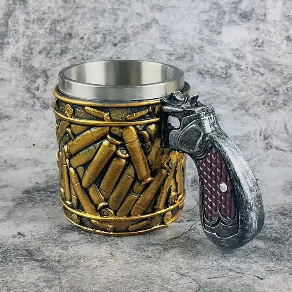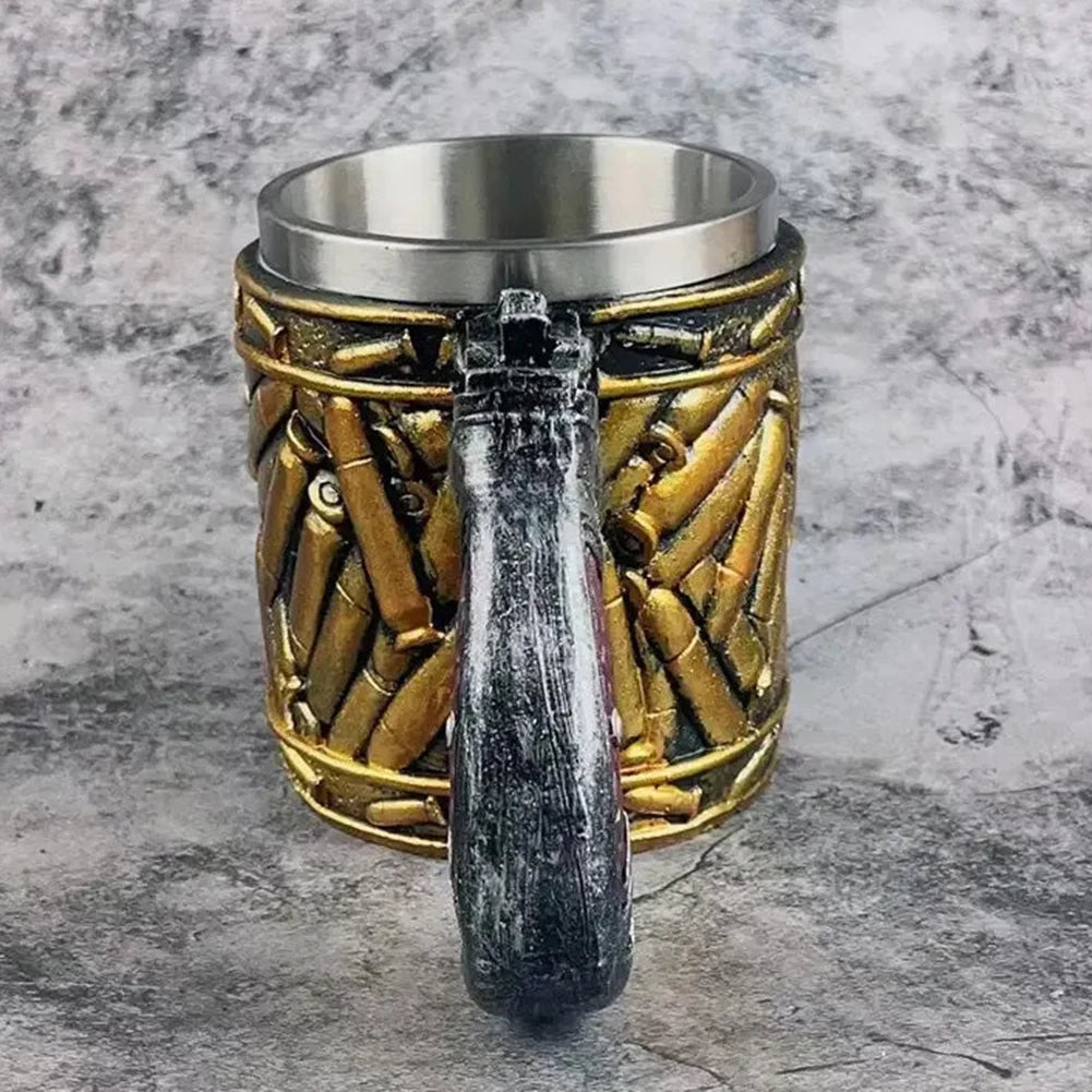 Distinctive Bullet-Pattern Design: Crafted with a unique bulletshell aesthetic, this stainless steel cup features a cool, rugged pattern that mimics the appearance of bullet casings. Its eye-catching design makes it a standout piece in any drinkware collection, perfect for enthusiasts of military or outdoor themes.