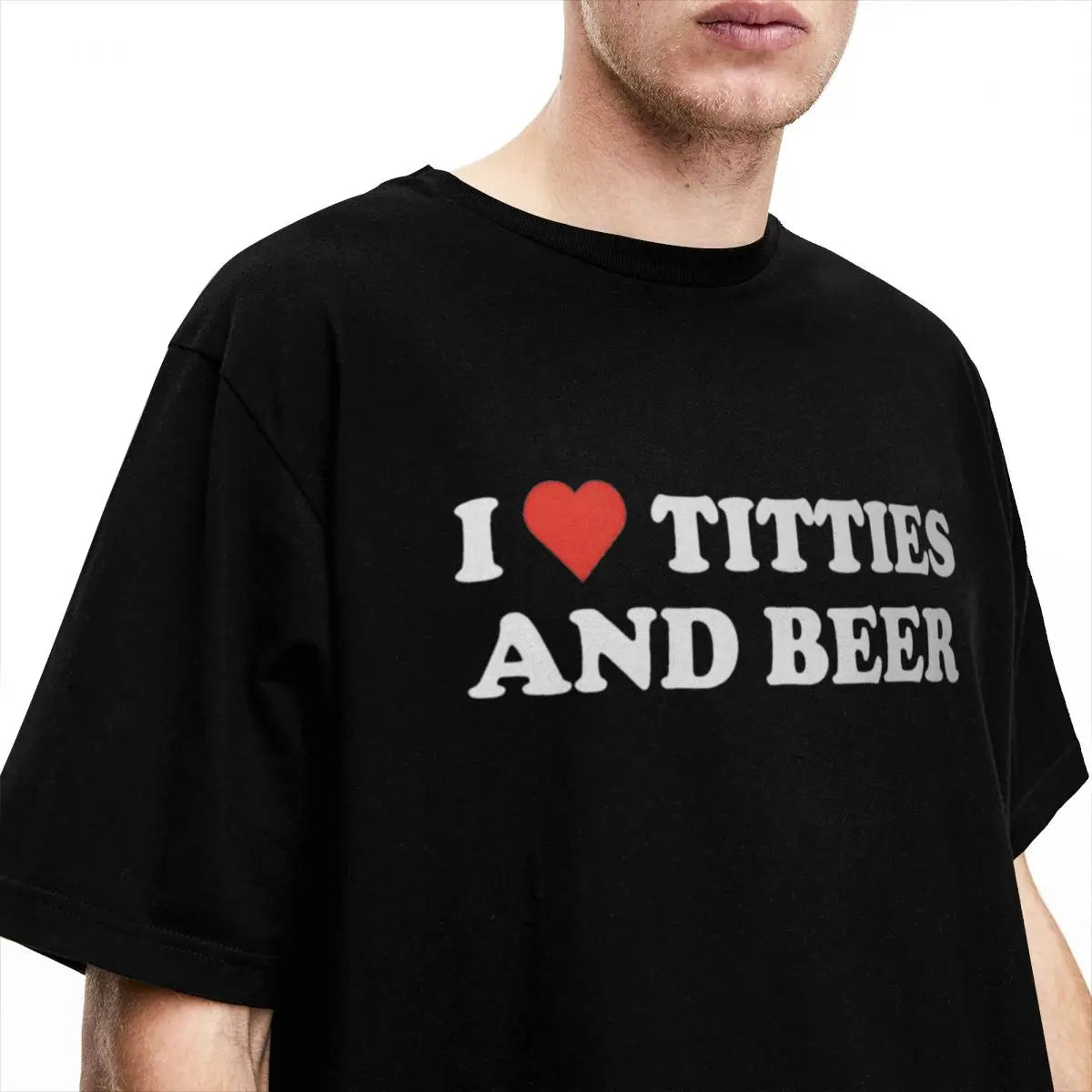 Bold and Humorous Design: This T-shirt features the provocative and humorous slogan "I Love Titties and Beer," perfect for those with a bold sense of humor. It’s sure to grab attention and spark conversation at social gatherings or casual outings.