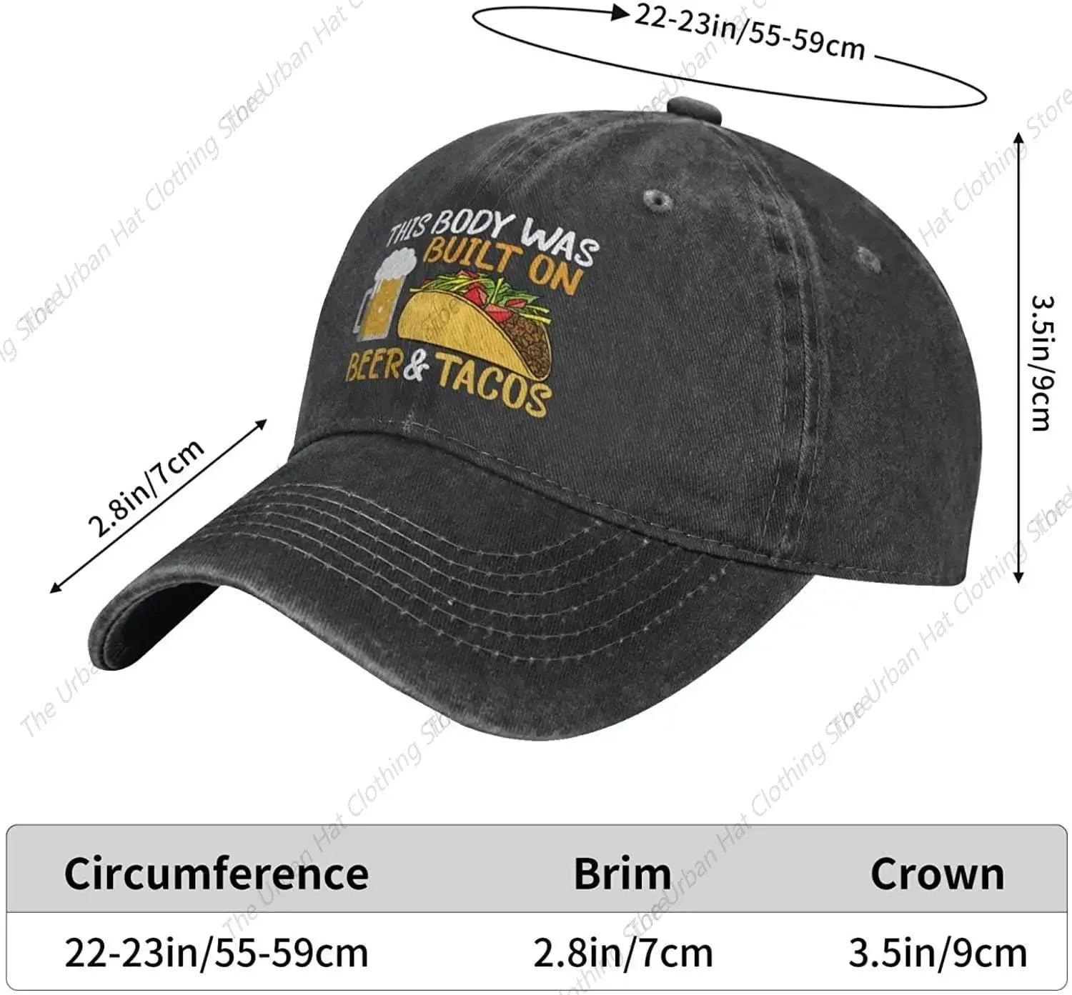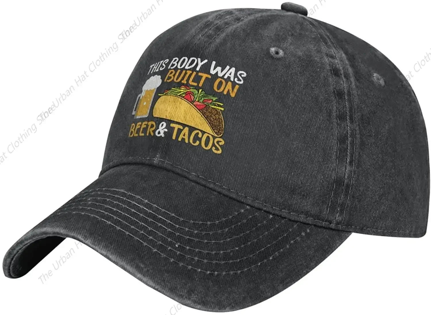 Fun and Playful Design: Featuring a humorous slogan that reads "This Body Was Built on Tacos and Beer," this trucker hat adds a lighthearted touch to any outfit. It's perfect for those who love to combine their passion for tacos and beer with a fun and stylish accessory, making it a great conversation starter.